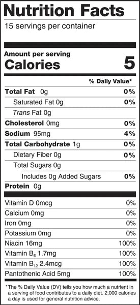 INGREDIENTS: Citric Acid, Natural Flavors, Taurine, Sodium Citrate, Caffeine, Stevia Extract, Dipotassium Phosphate, Niacin, Pantothenic Acid, Vitamin B6, Vitamin B12